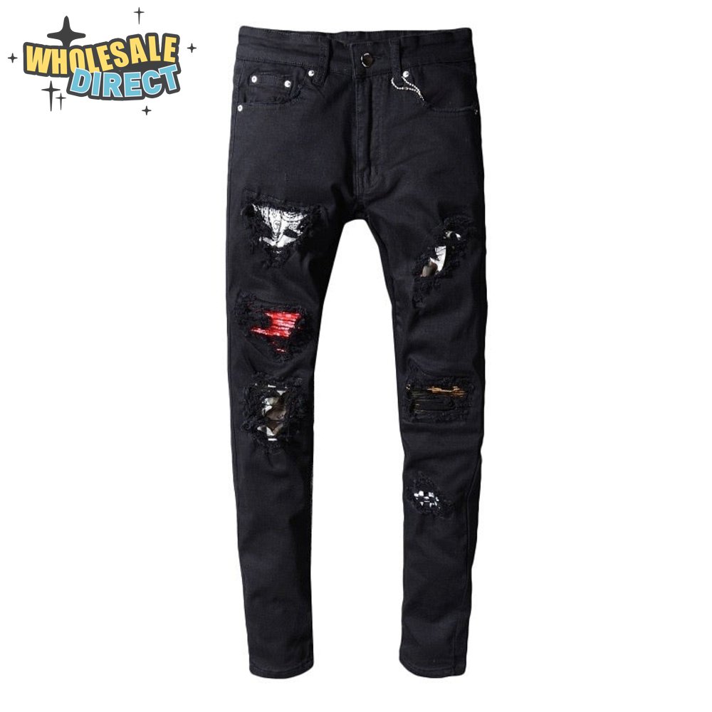 Amiri Bandanna Rip Jeans Black / Red / White