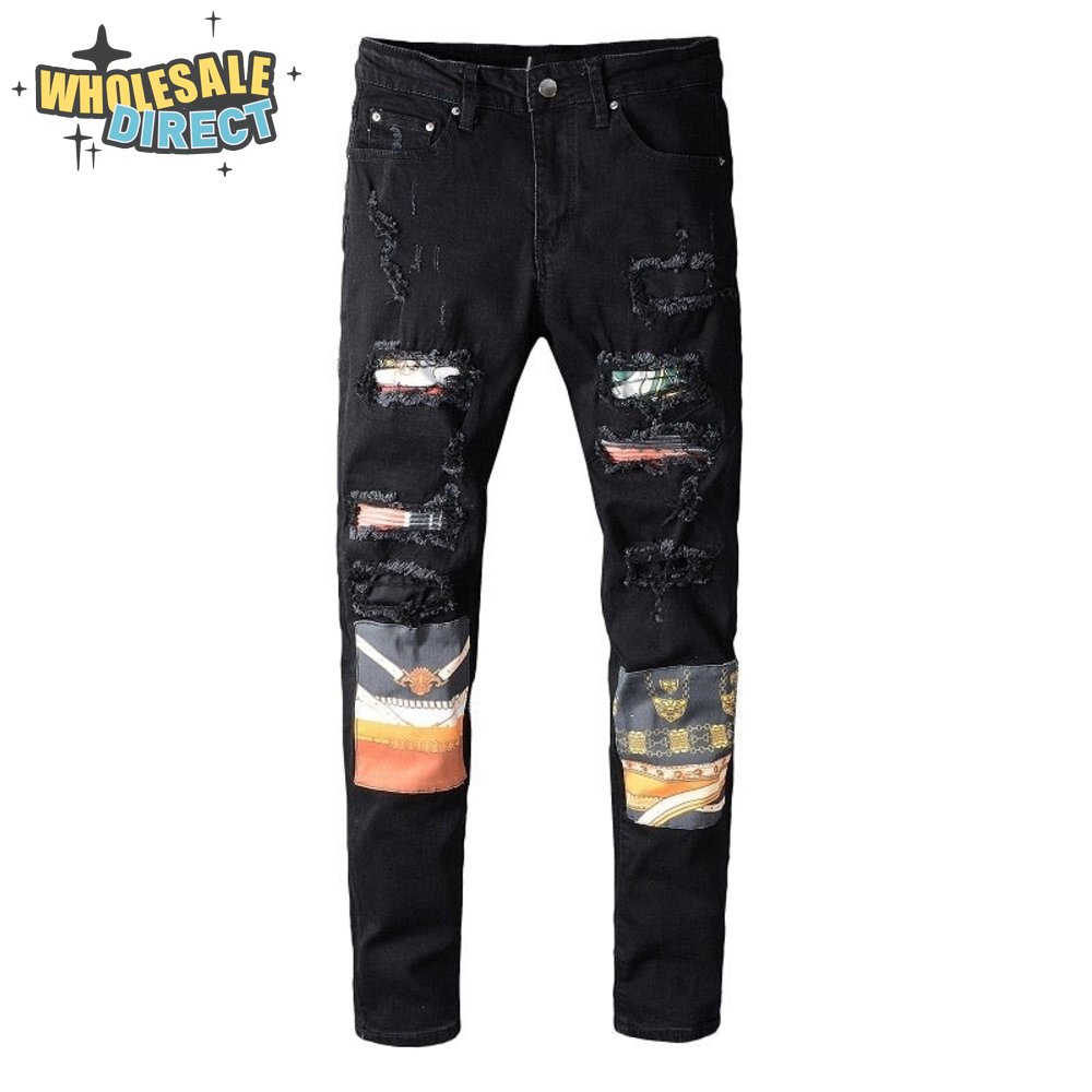 Amiri Bandanna Rip Jeans Black / Red / White