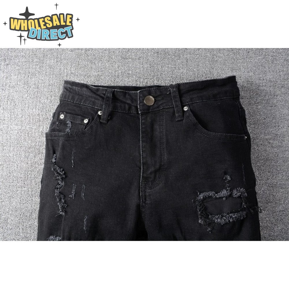 Amiri Chain Design Rip Jeans Black