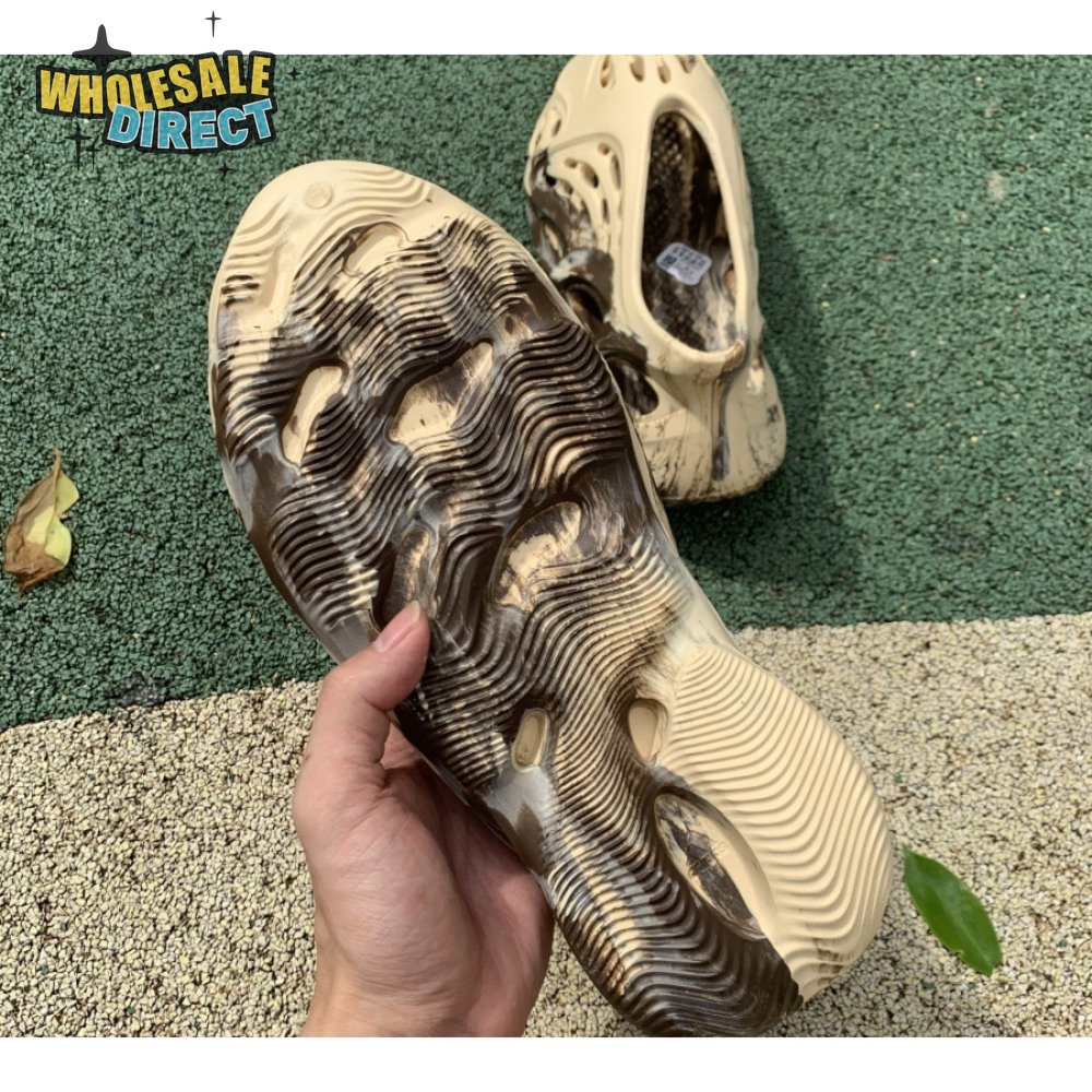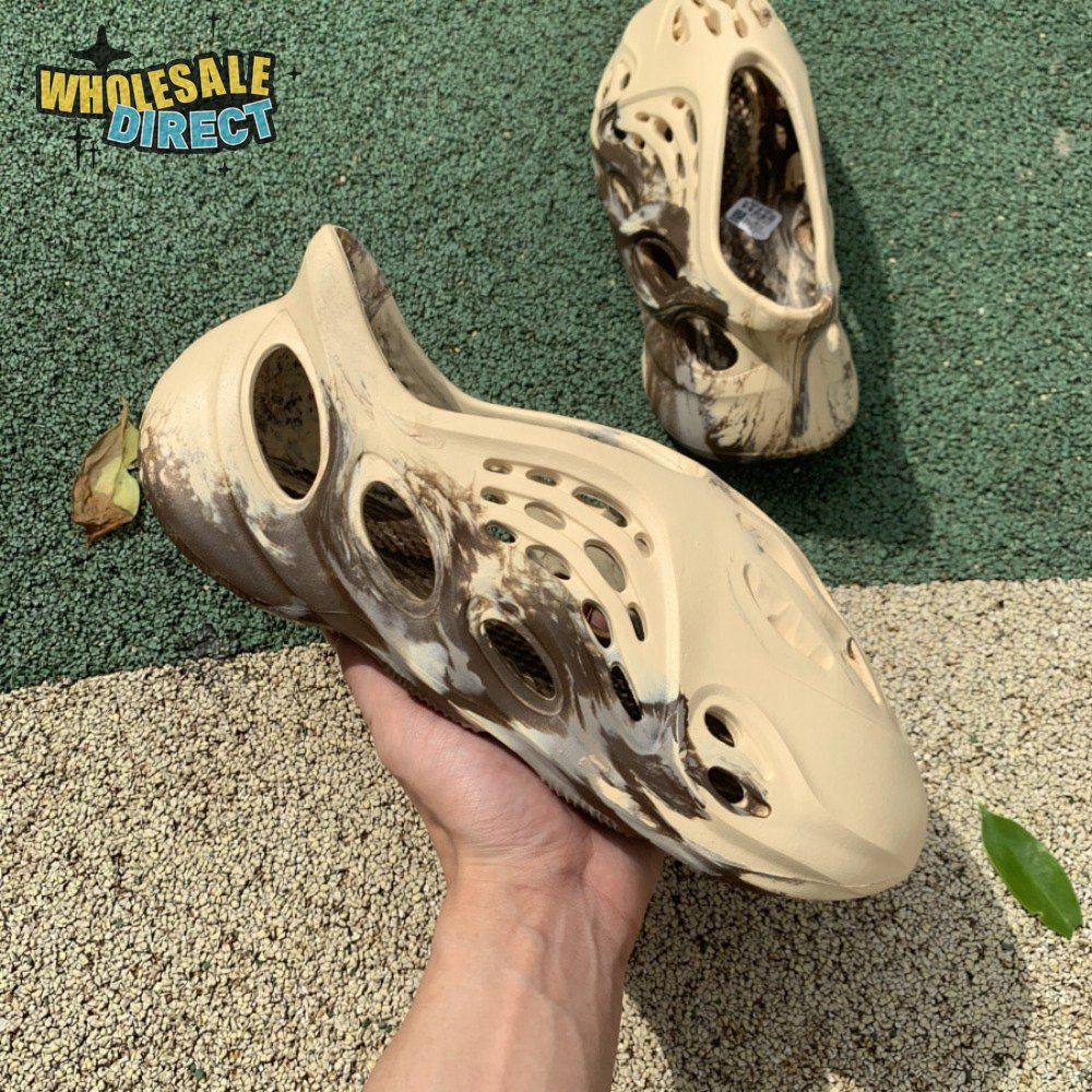 The adidas Yeezy Foam Runner "MX Cream Clay" enlivens Kanye West"s amphibious slip-on with a swirling blend of brown and grey. The neutral hues appear to have been painted on the surface of the cream-colored one-piece upper, crafted from a combination of lightweight EVA and hydroponically produced algae. Ventilation ports of varying sizes ensure breathable comfort, while the sculpted design keeps the foot locked in place.