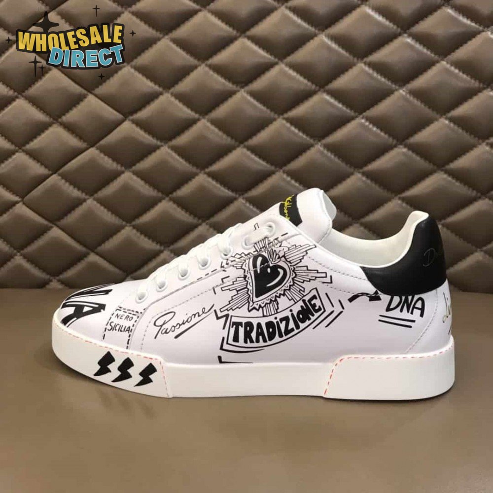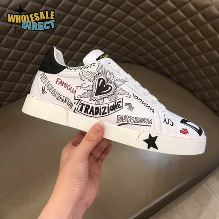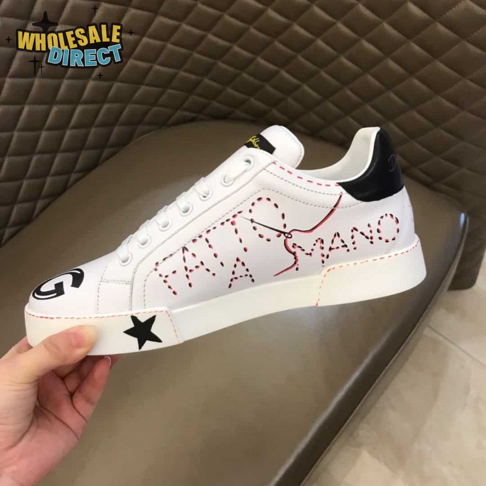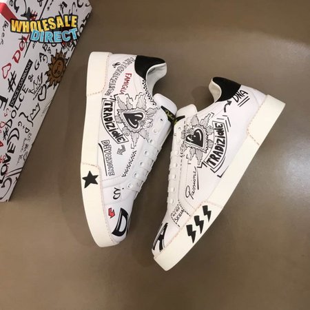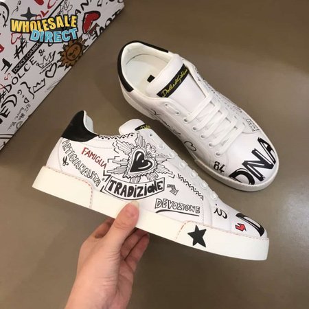 DOLCE & GABBANA CALFSKIN PORTOFINO SNEAKERS WITH PATCHES OF THE DESIGNERS - DG2