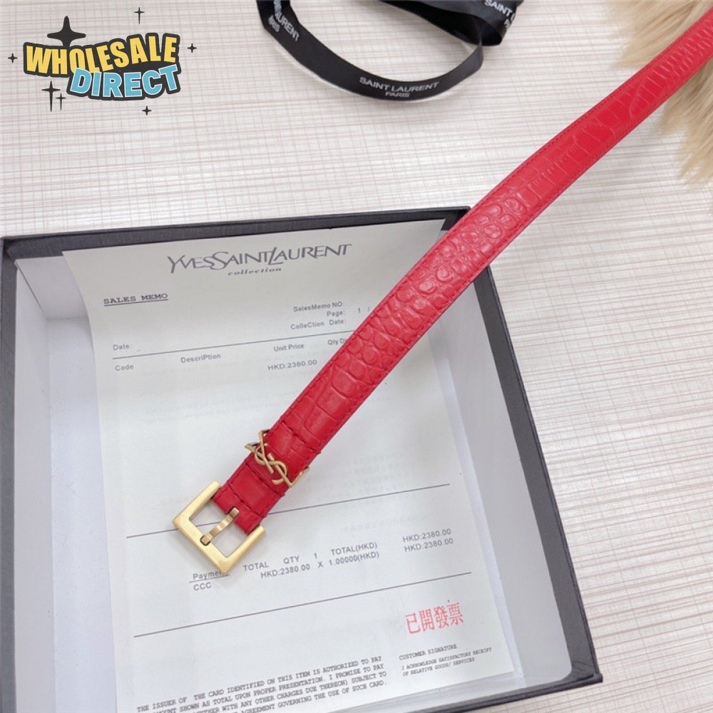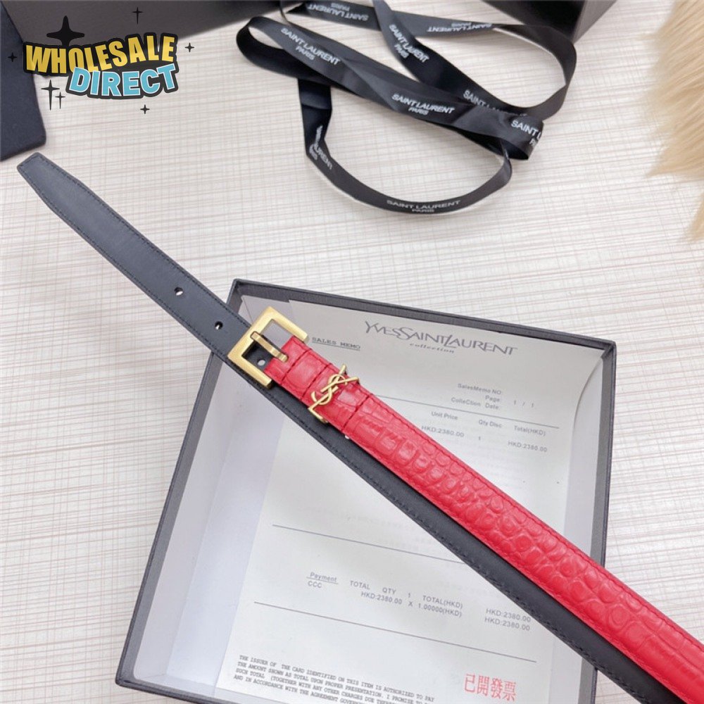 ysl crocodile grain top layer leather belt