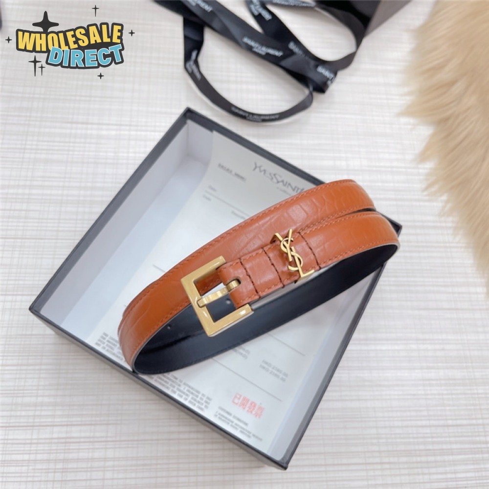ysl crocodile grain top layer leather belt