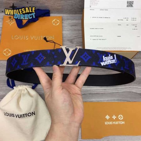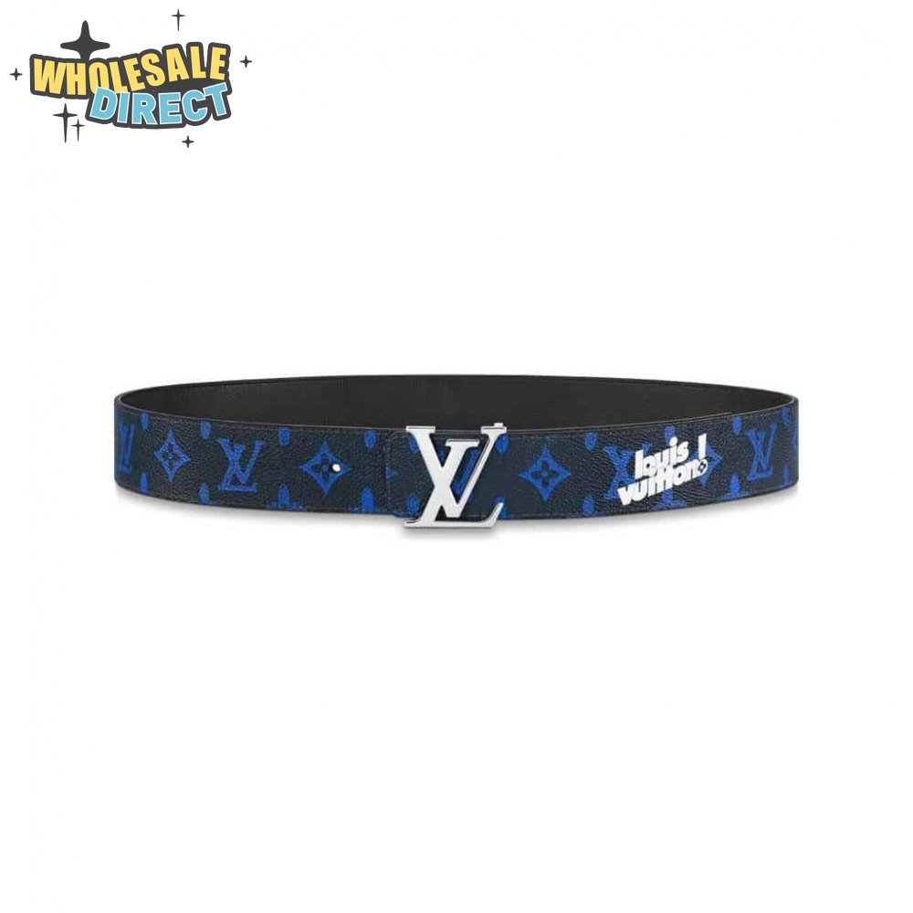 initiales everyday 40mm reversible belt blue monogram black calf leather - b79