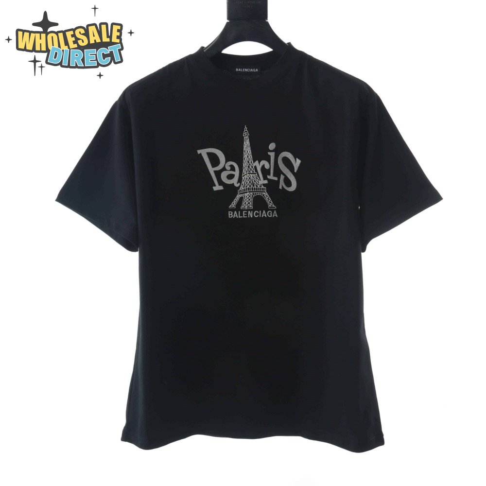 BELENCIAGA PARIS TOWER EMBROIDERED T SHIRT