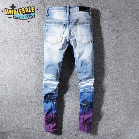 Amiri Palm Tree Jeans Light Blue/ White / Purple
