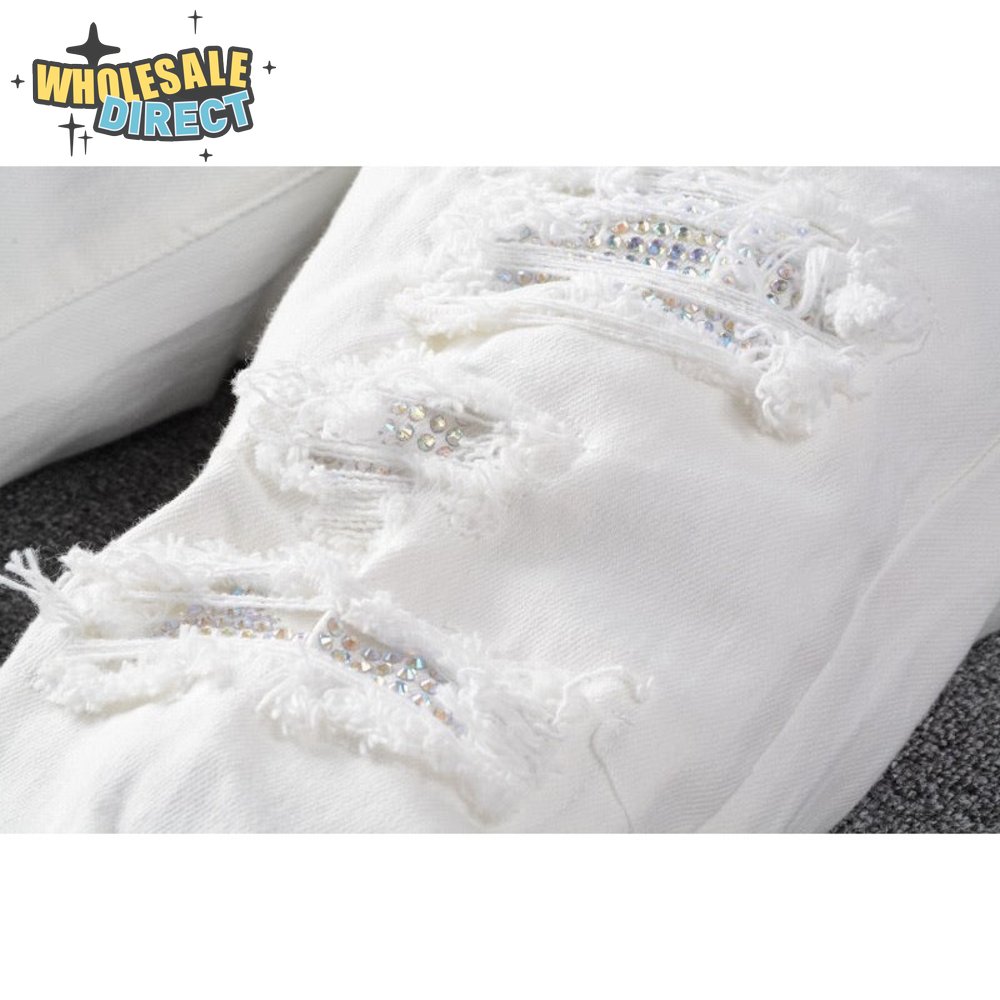 Amiri Rhinestone Jeans White