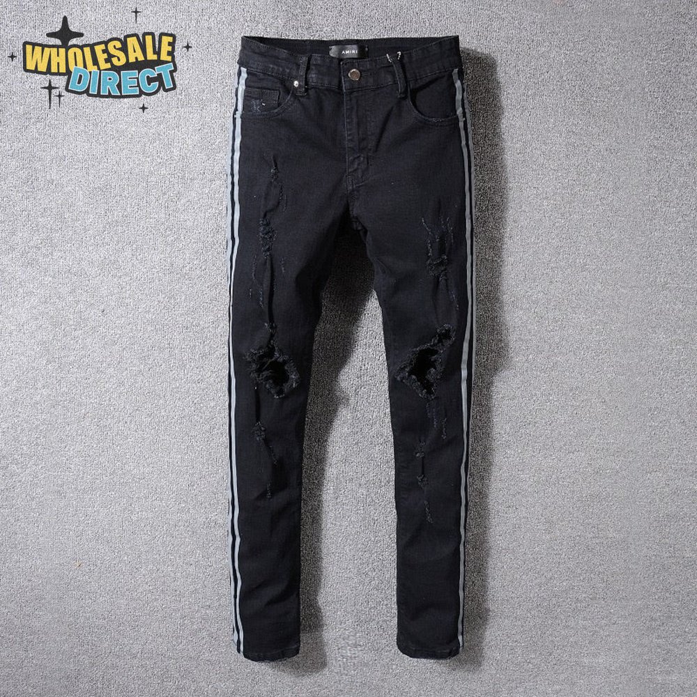 Amiri Striped Rip Jeans Black/Sliver