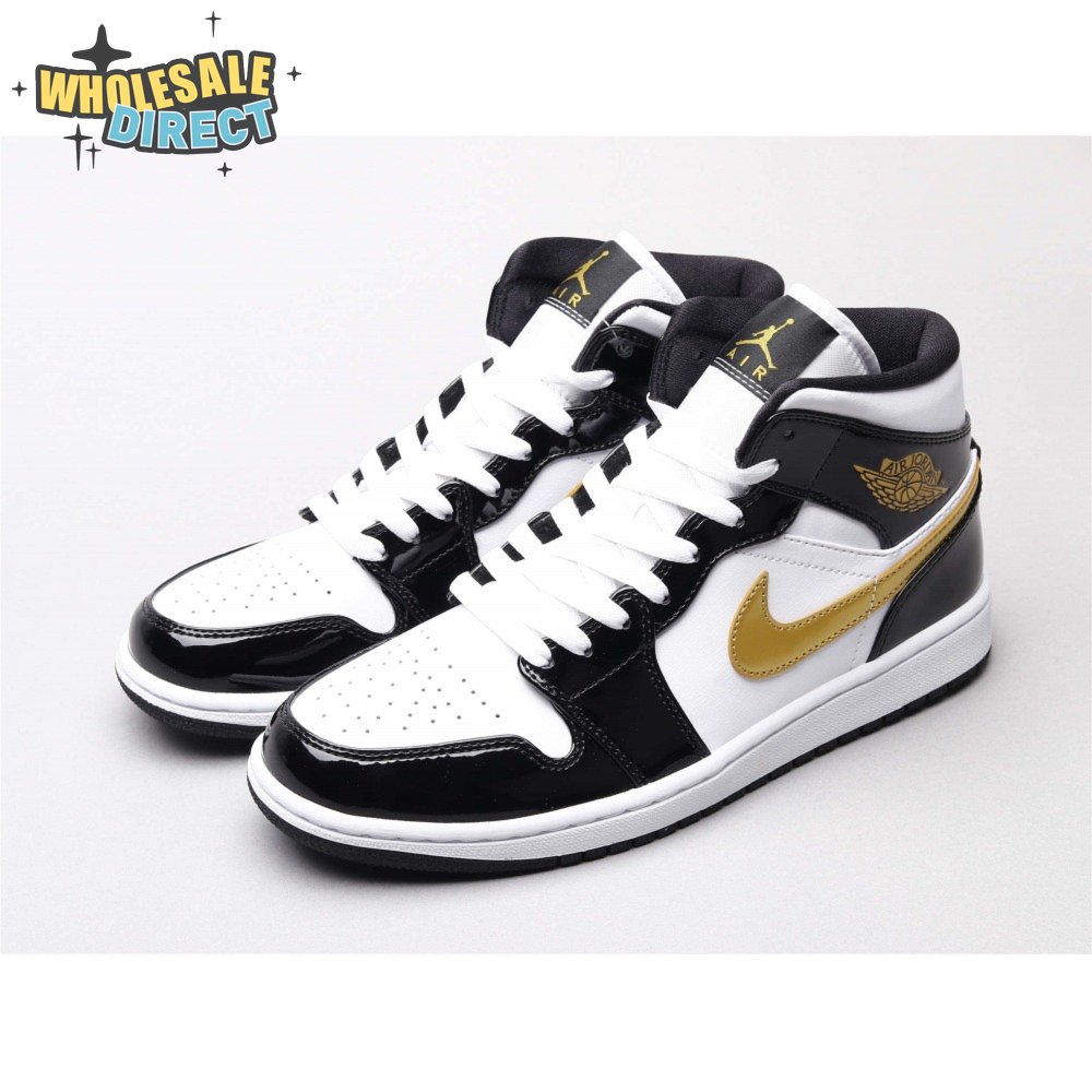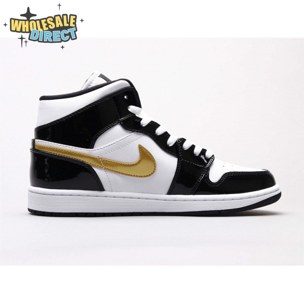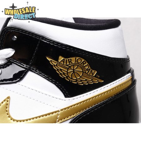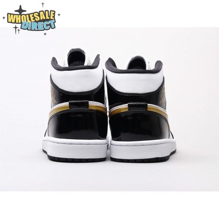 Air Jordan 1 Mid Patent Black White Gold Unisex