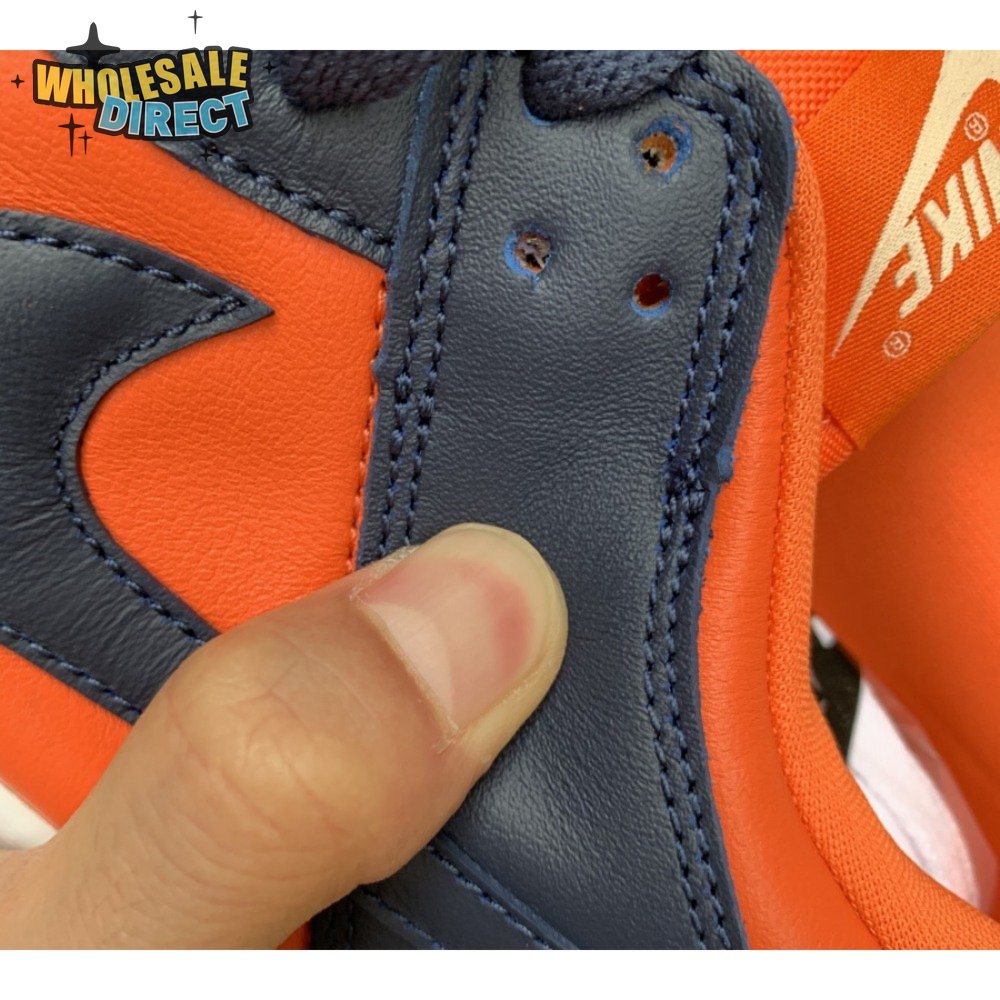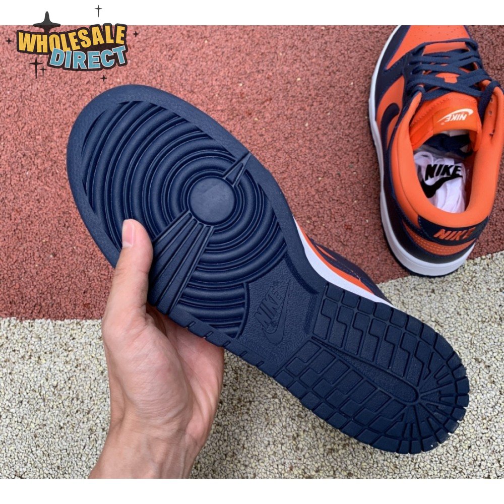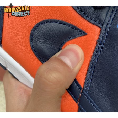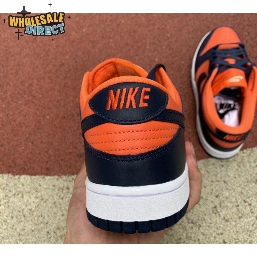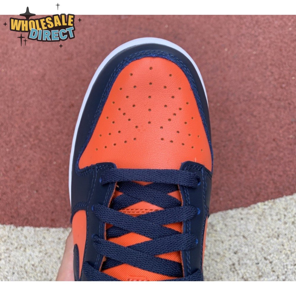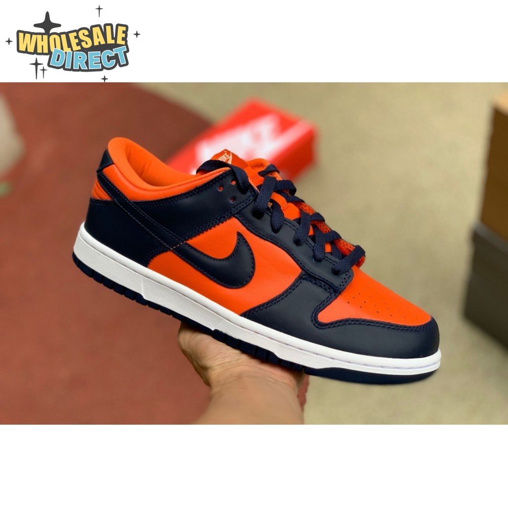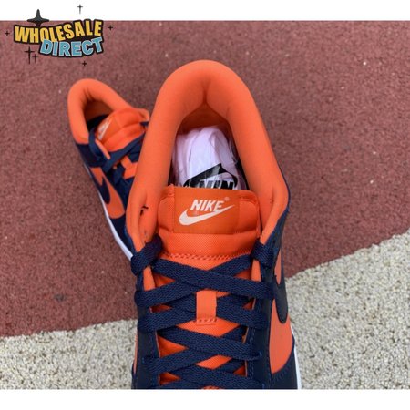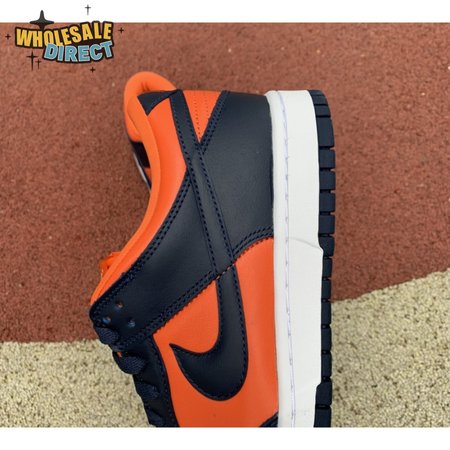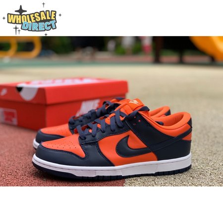 The Nike Dunk Low SP "Champ Colors" channels the simple aesthetic of the silhouette"s OG colorways from the "80s. The all-leather upper features an orange base with contrasting blue overlays and a white Nike Swoosh. Perforated detailing on the toe box offers added breathability, while a nylon tongue and padded collar combine for a comfortable fit. The low-top rides on a stitched white foam midsole, supported by a blue rubber outsole underfoot.