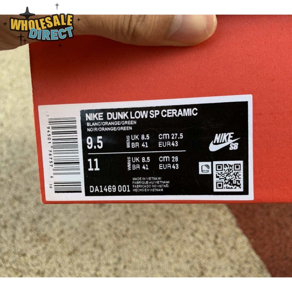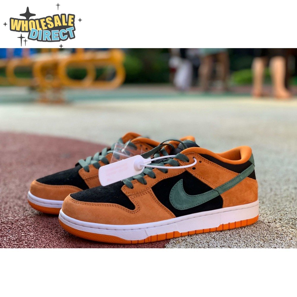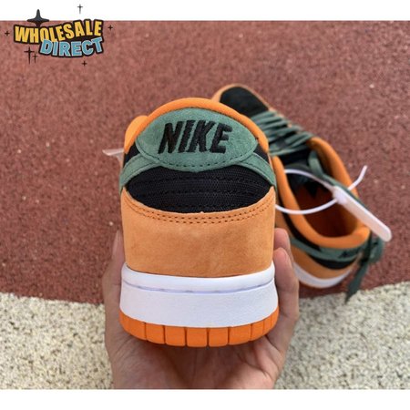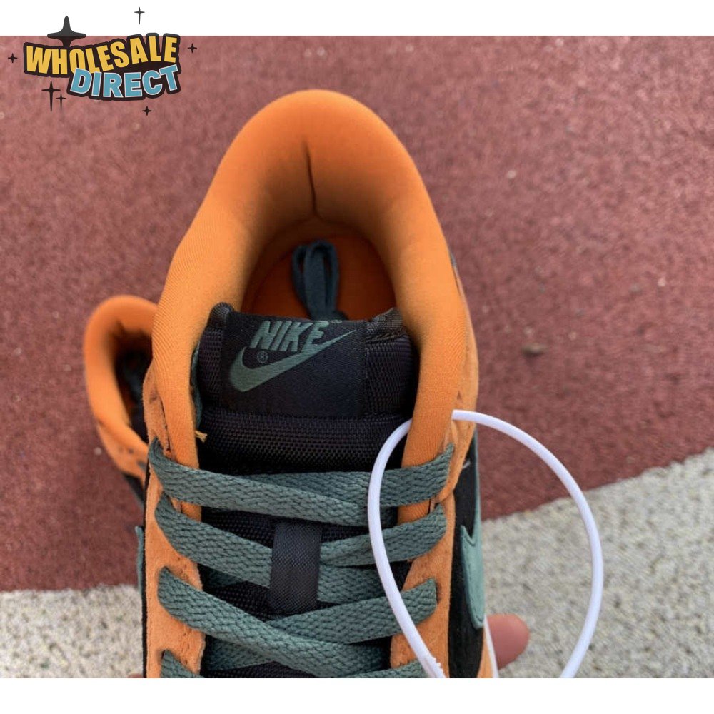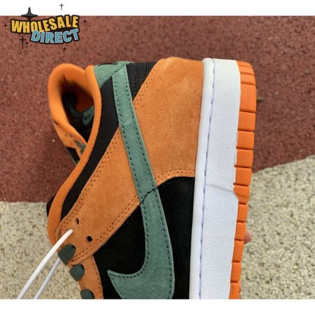 The 2020 reissue of the Nike Dunk Low SP Retro "Ceramic" brings back an original colorway from the CO.JP "Ugly Duckling Pack," released exclusively in Japan in 2001. Like the other pairs in the three-piece collection, the low-top highlights clashing hues on a premium suede upper. Here, the sneaker"s black base is contrasted by Ceramic orange overlays and Nori green hits on the Swoosh, laces and heel tab, embroidered with Nike branding. A second Nike wordmark adorns the woven tag atop the mesh tongue.