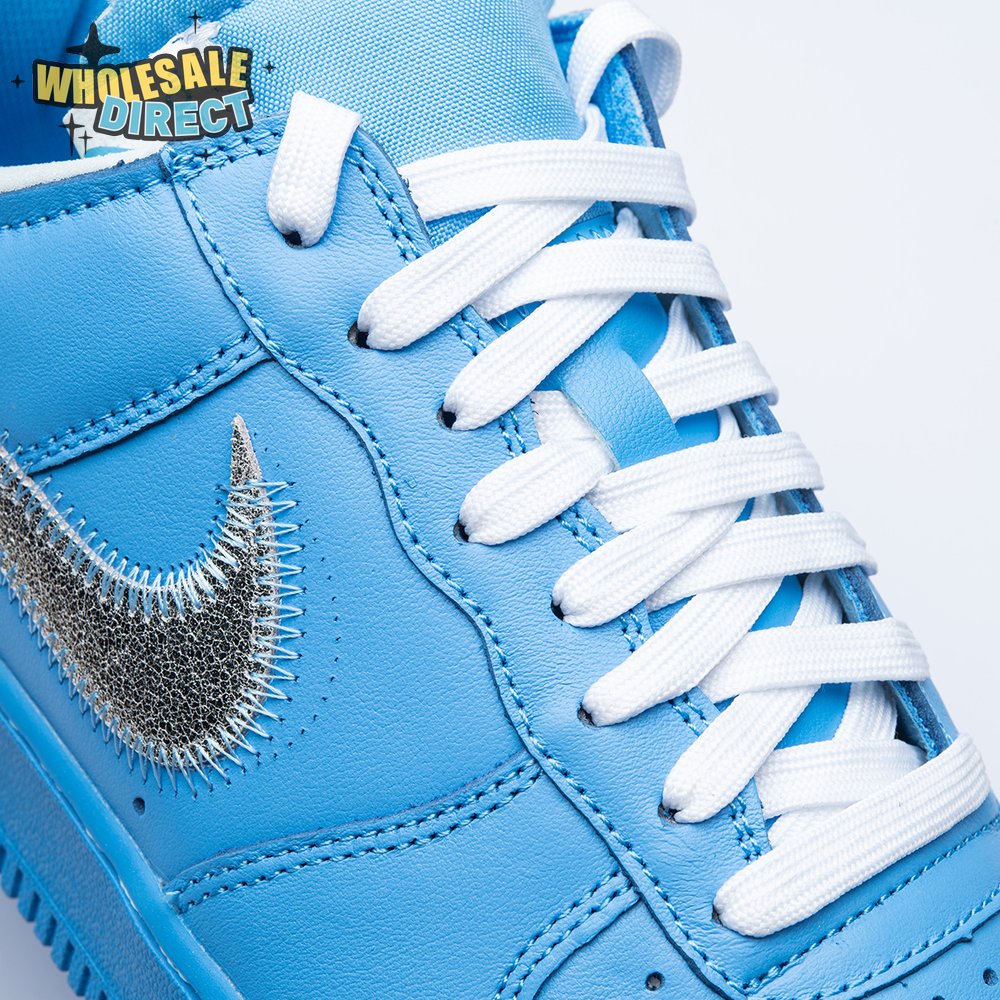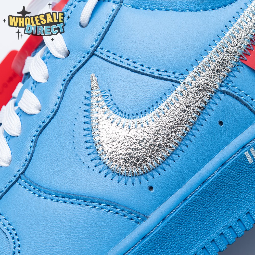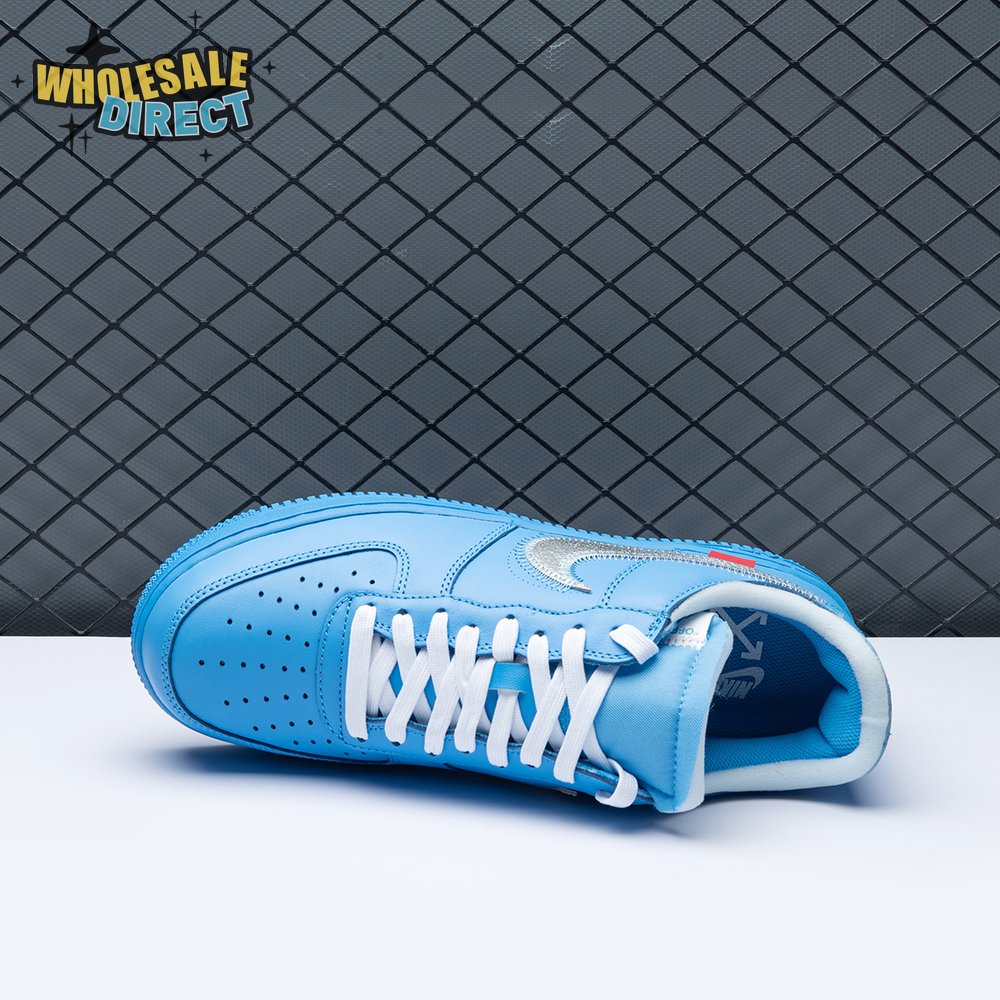 In celebration of his exhibit premiering at the Museum of Contemporary Art in Chicago in June 2019, Virgil Abloh teamed up with Nike once again to produce a Nike Air Force 1. The Off-White x Air Force 1 Low '07 'MCA' shoe features a University Blue leather upper and a Metallic Silver Swoosh with prominent stitching and a signature red tab. For a full circle-feel, the shoe reprises key design details from previous Off-White offerings, including the iconic zip tie and quoted branding.