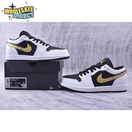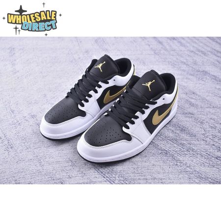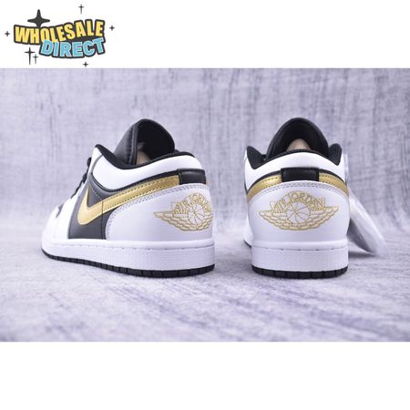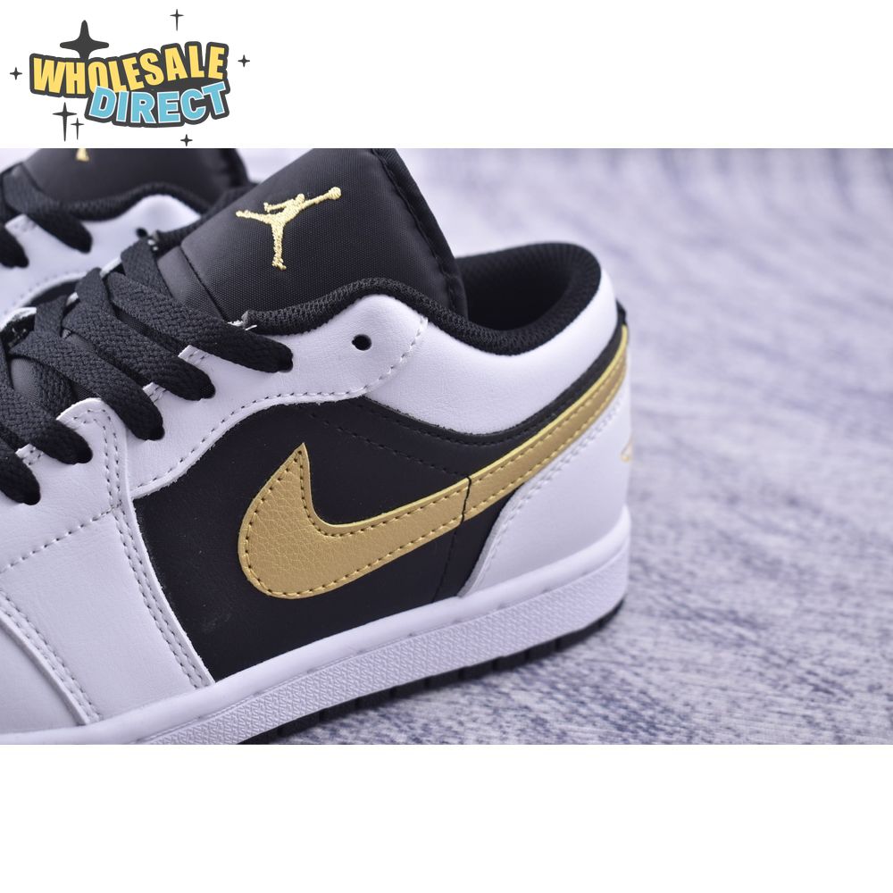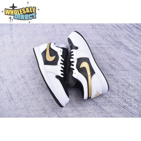 Jordan 1 Low White Black Metallic Gold Swoosh 553558-172 Unisex