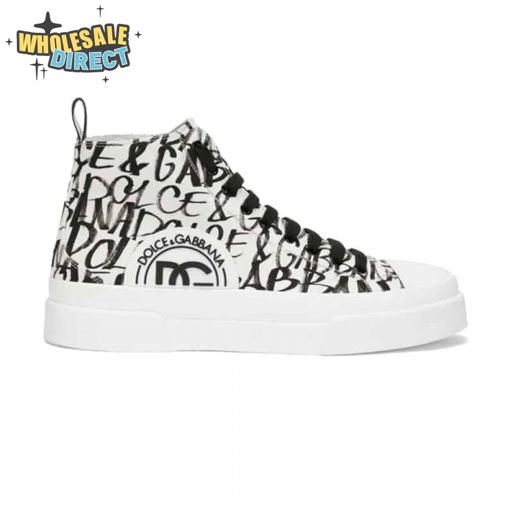 DOLCE AND GABBANA CANVAS PORTOFINO LIGHT MID-TOP SNEAKERS WITH DG LOGO PRINT - DG109