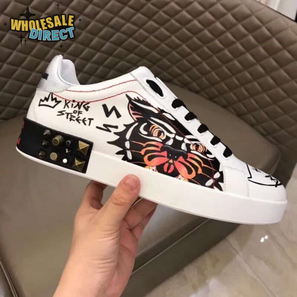 DOLCE & GABBANA PRINTED CALFSKIN PORTOFINO SNEAKERS - DG5