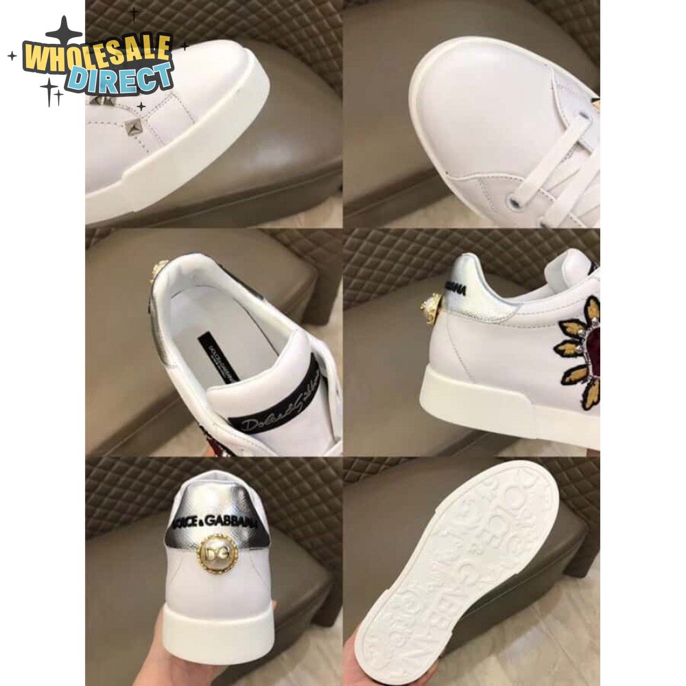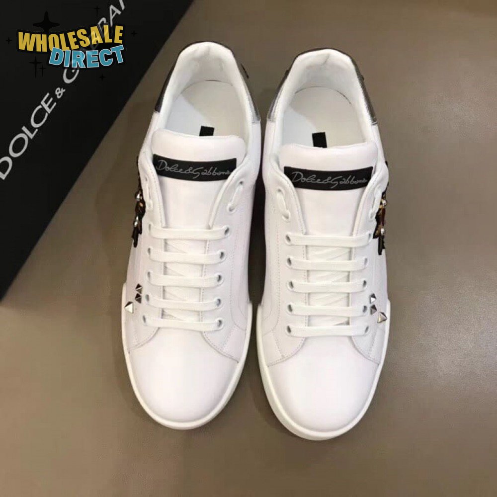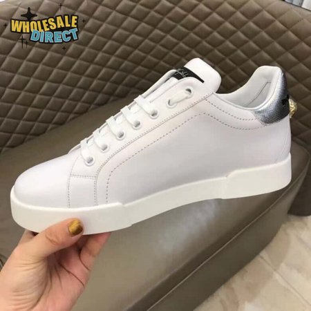 DOLCE & GABBANA SNEAKERS PORTFINO IN WHITE LEATHER WITH PERLA LOGATA - DG21